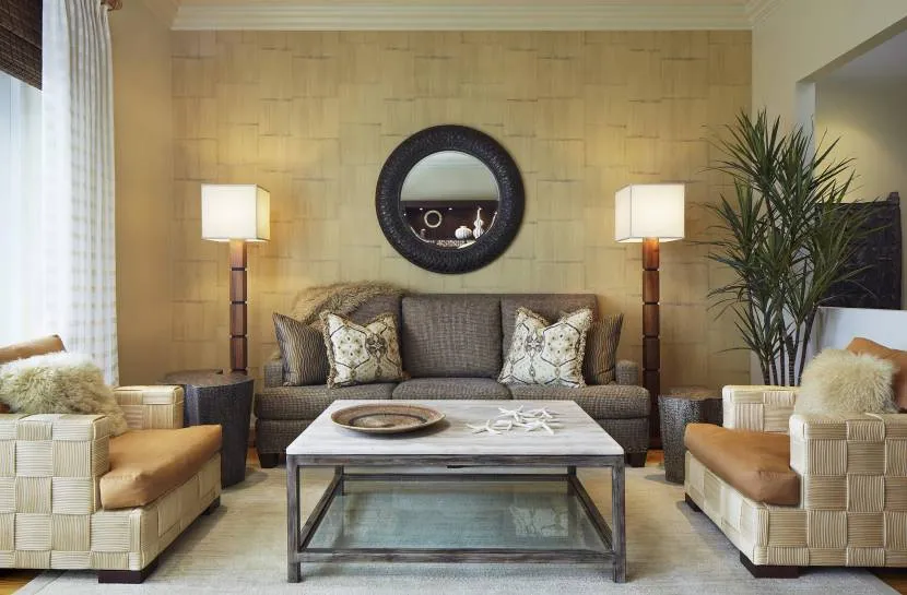 Методы комбинирования обоев в гостиной