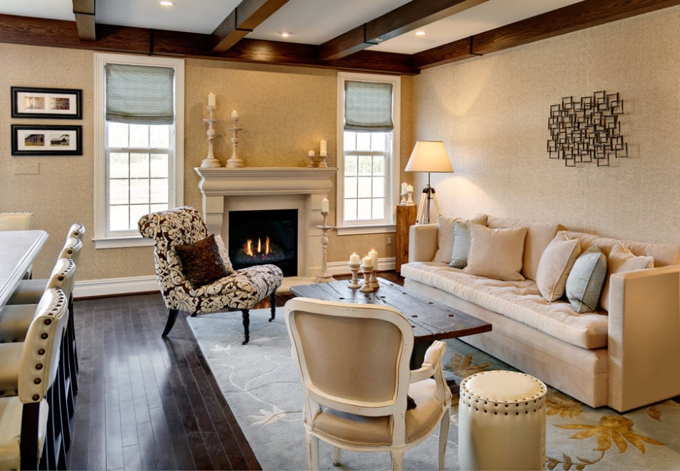 Бежевые обои. Классический вариант оформления гостиной. Считается, что это цвет аристократии. Бежевые обои будут прекрасно смотреться в любое время суток, так как имеют очень красивый оттенок. Чтобы интерьер не выглядел сильно скучным и бледным, рекомендуется делать яркие акценты. Чаще всего гостиную в бежевом варианте предпочитают жизнерадостные люди. Хорошо сочетается с белым цветом. Тем самым можно выделить мягкую мебель.
