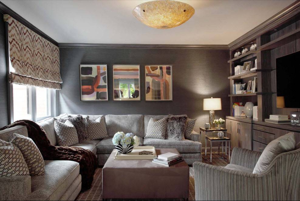 Поэтому планировать и выбирать дизайн гостиной имеет смысл всей семьей – это одно из самых увлекательных занятий. Но это не значит, что одна часть гостиной будет оклеена яркими обоями, которые понравились детям, другая – серыми или бежевыми (по требованию старших членов семьи), а где-то найдется зона, куда папа пожелает вставить фотообои с автомобилями. Все должно быть гармонично, и семья должна прийти к единому мнению.