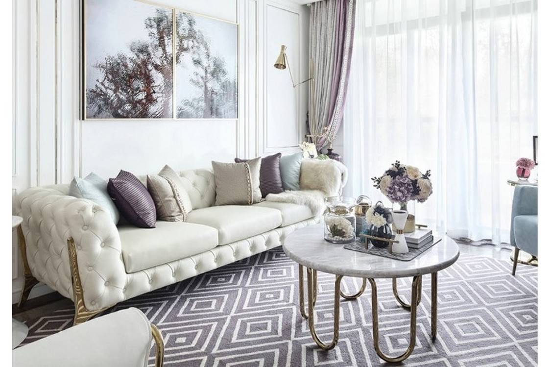 - Модерн. Стиль модерн включает в себя комбинирование нежных пастельных тонов с яркими, сочными полотнами или орнаментами. Наиболее подходящий для создания позитивного настроения и уюта в гостиной, учитывая точный цвет обоев, подходящих для зала.