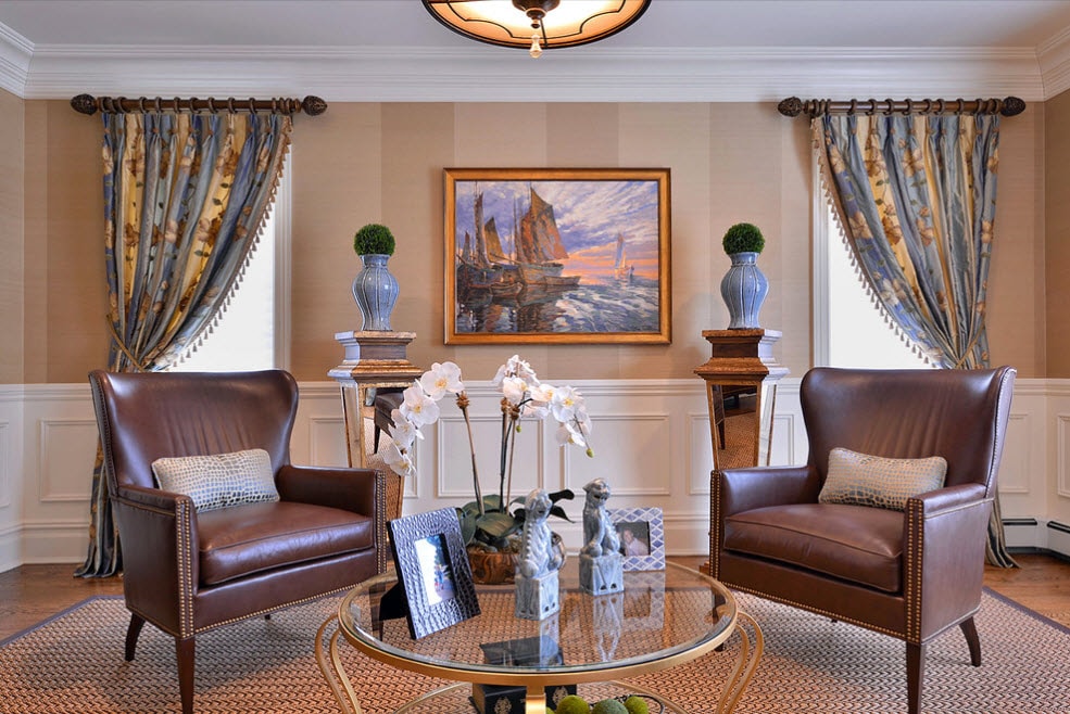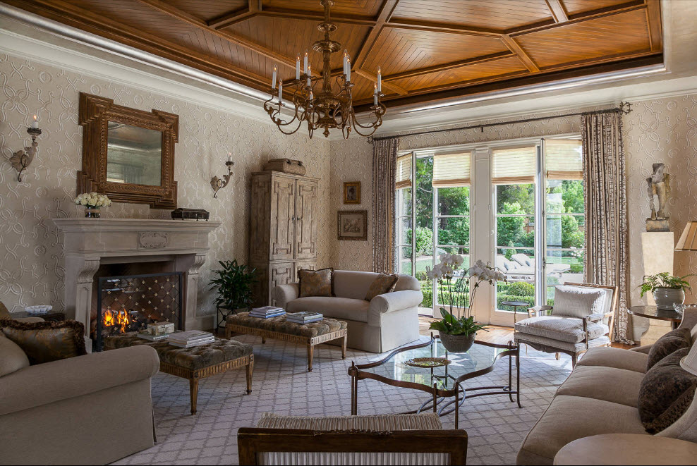 Гостиная в стиле барокко, оформленная дорогими обоями с шелкографией