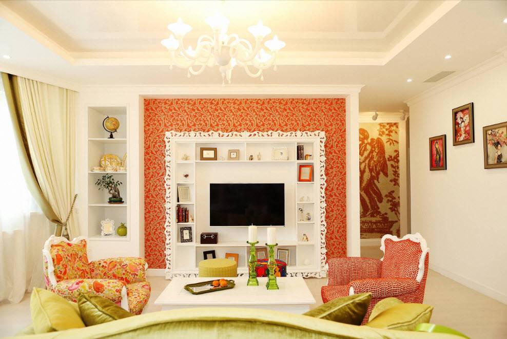 Можно выделить несколько основных приемов для поклейки обоев в гостиной: