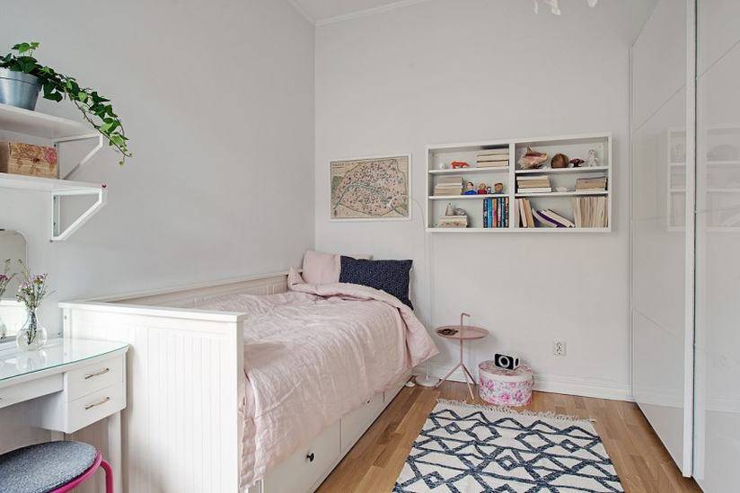 - Подростку понравится сочетание минимализма и сканди. Для данного направления характерна встроенная мебель, спокойная цветовая палитра и минимум декоративных деталей, отвлекающих от учебы.