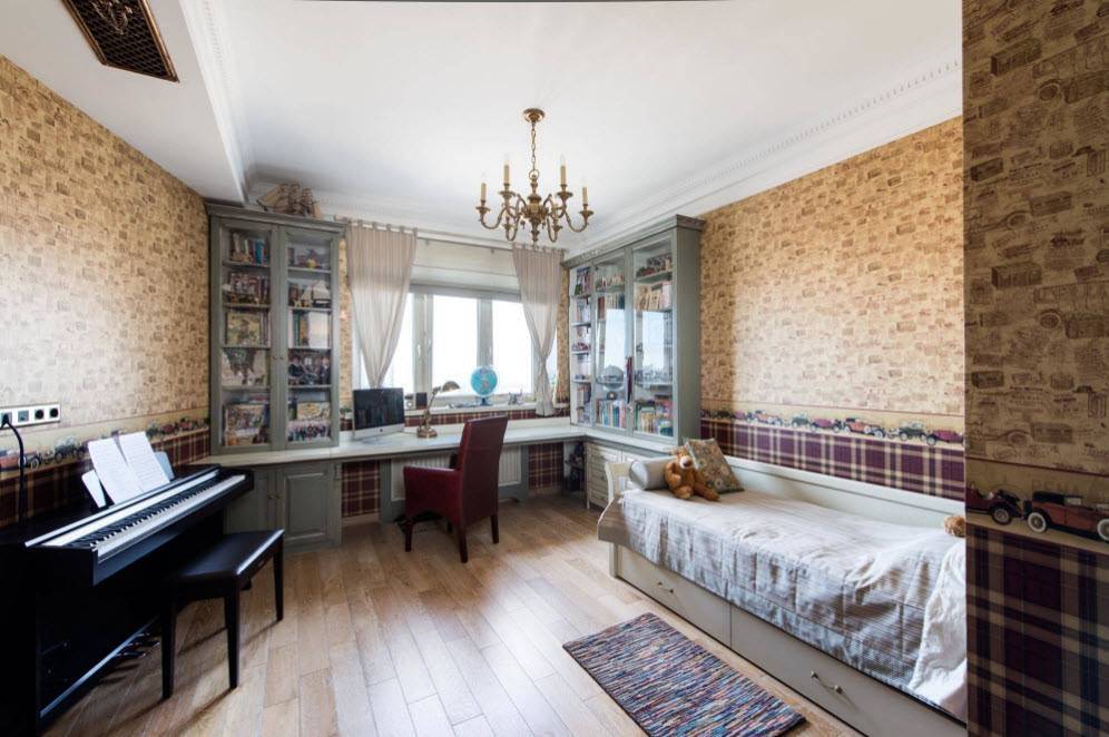 - Для просторной комнаты допускается классический стиль или более сдержанная американская версия, сочетающая минимализм и классику.