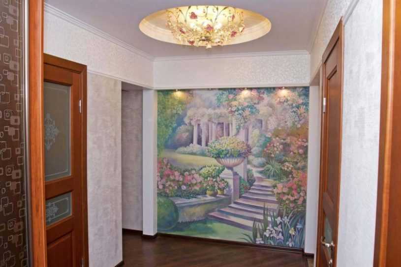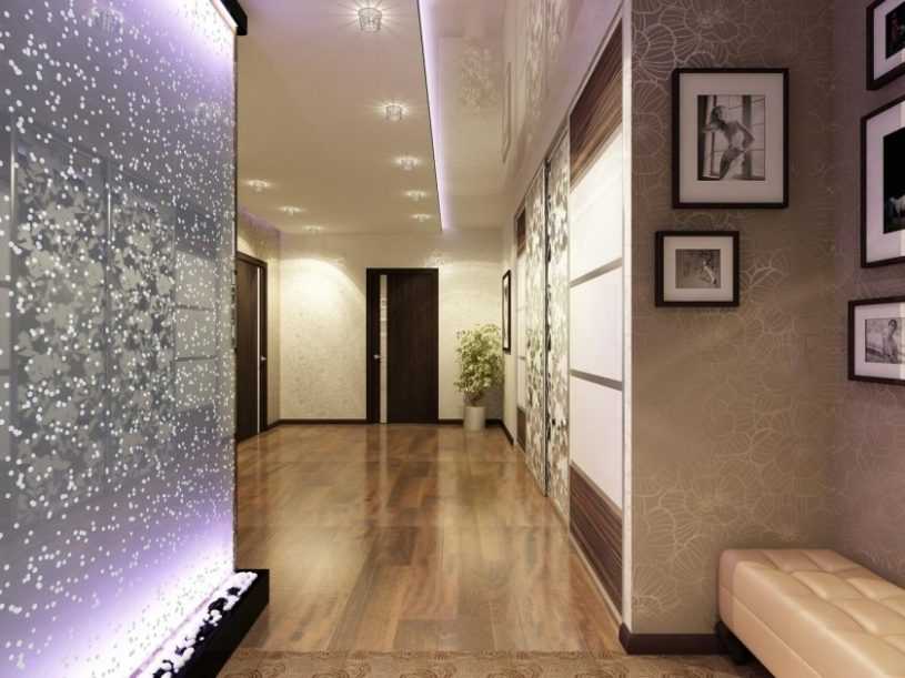 Если коридор упирается в стену, можно там расположить фотообои с пейзажем, уходящим в перспективу;