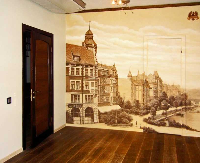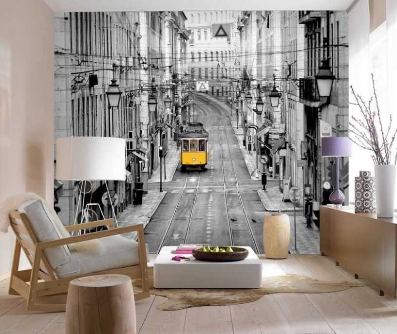 Фотообои. Они могут быть гладкими или с фактурой, имитирующей штукатурку, холст, песок или камень. Фотопечать может не только расширить пространство, но и послужить стилеобразующим элементом интерьера.