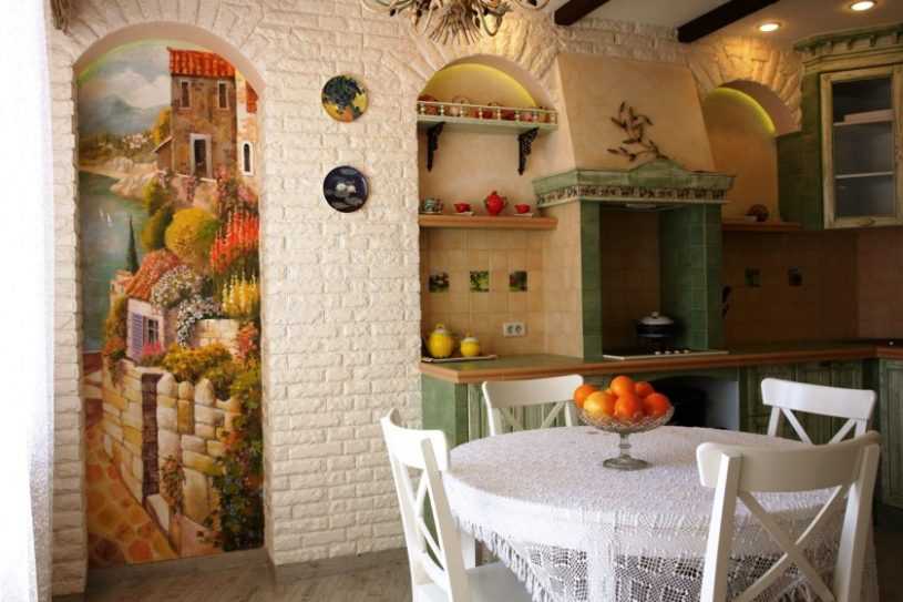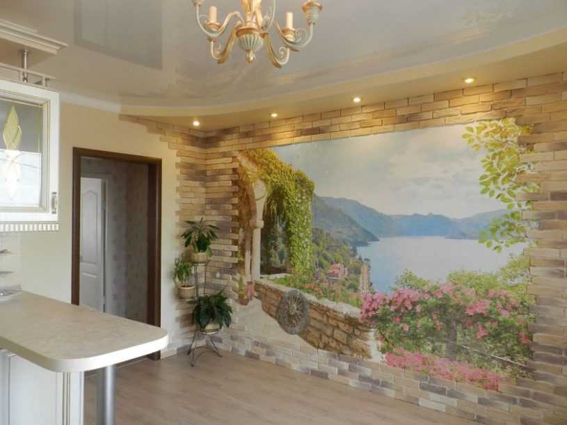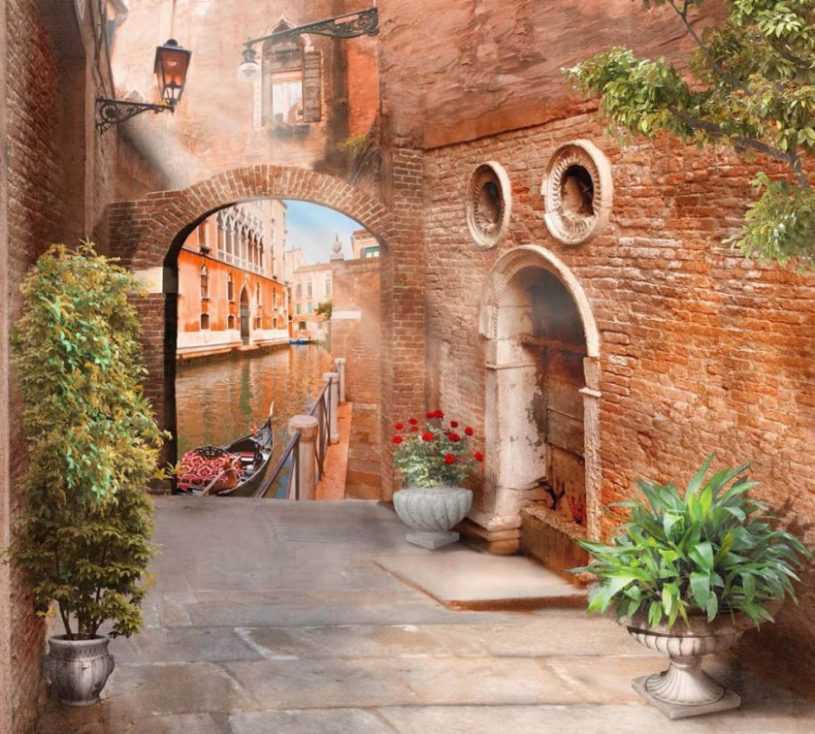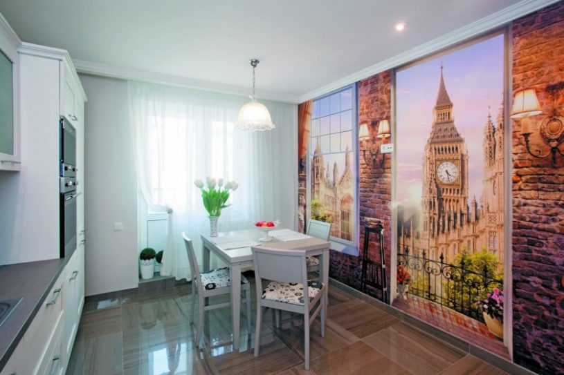 - Фотообои. Красивые панно с изображениями старинных улочек городов, известных картин и фресок украсят интерьер, к тому же расширят небольшое пространство.