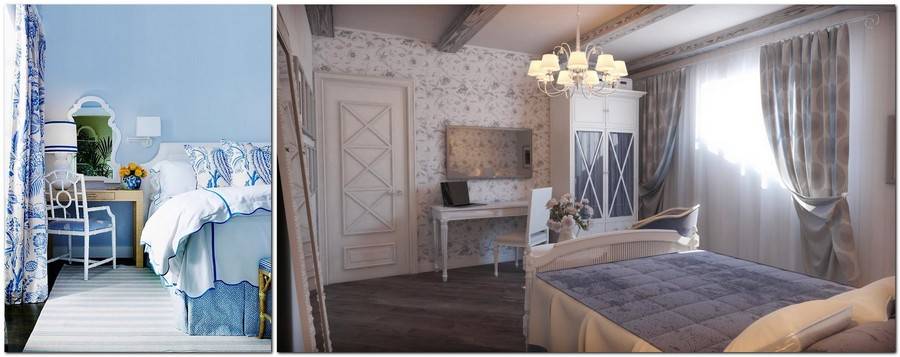 Спальня в романтическом провансе выглядит нежно и мило. Выбирайте постельное белье с рюшами и оборками из льна и ситца, занавески в цветочек, зеркала в металлических рамах, изящные коврики и вазы с цветами. Мебель должна быть изящной, с изогнутыми ножками, резными спинками светлых тонов.