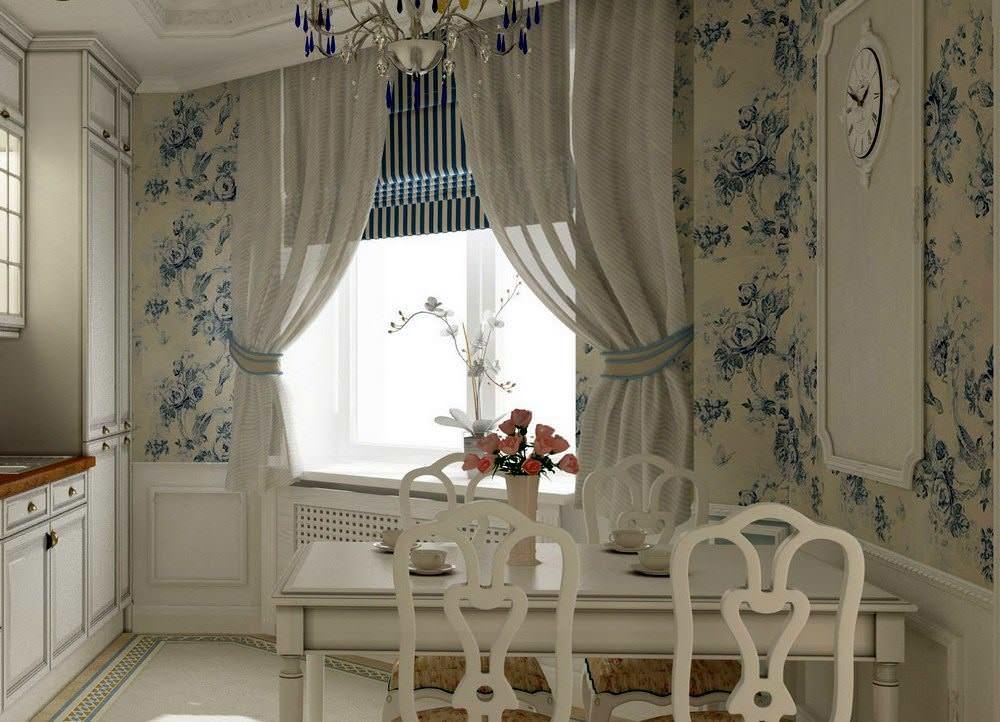 Дизайнеры советуют придерживаться таких рекомендаций при отделке обоями кухни в прованском стиле: