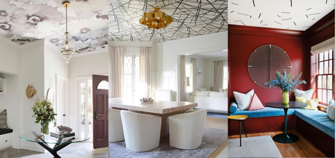 Виды обоев для оклейки потолка