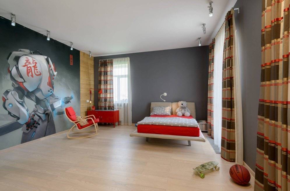 Интерьер, который предпочитает подросток (13-16 лет), может быть разнообразен. Здесь уже не играет большой роли гамма цветов (для малышей актуален синий и зеленый). Сейчас в комнате у мальчика может быть любой оттенок красного, фиолетового, желтого и т. д. Исходя из этого, можно выделить самые популярные стили дизайна интерьера.