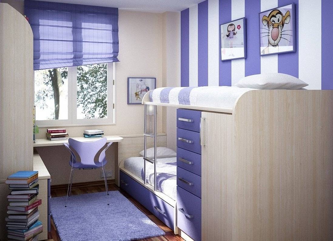 Комната для разнополых подростков. Пространство разделено на зоны при помощи разных расцветок на обоях