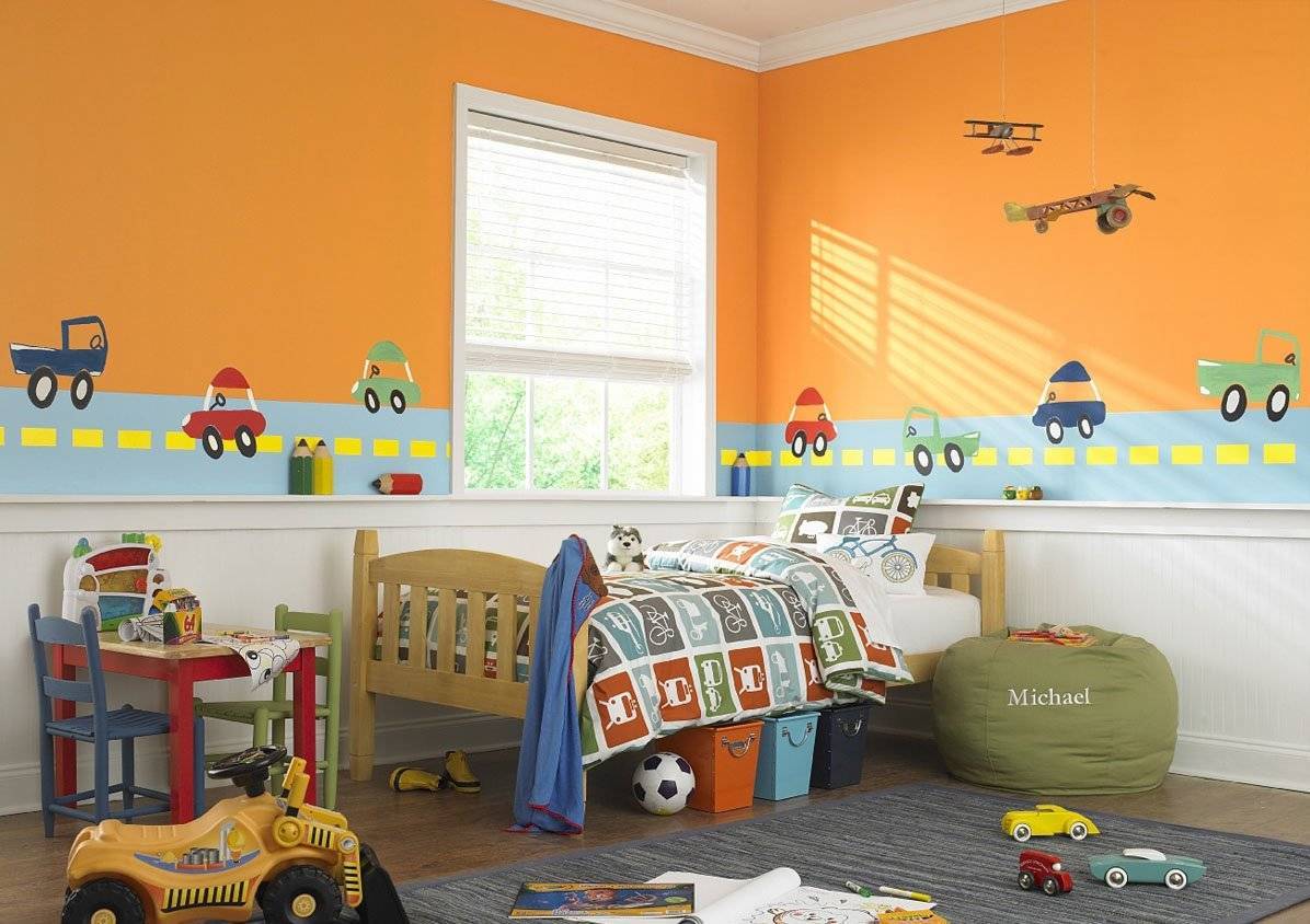 Хорошо использовать желтые обои в помещении на северной стороне, независимо от отделочных материалов. Он компенсирует отсутствие солнечных лучей в сочетании с правильно организованным искусственным освещением детской комнаты. Чистый оранжевый хорошо сочетается с зеленым и белым, но в оформлении детской его не должно быть в избытке.
