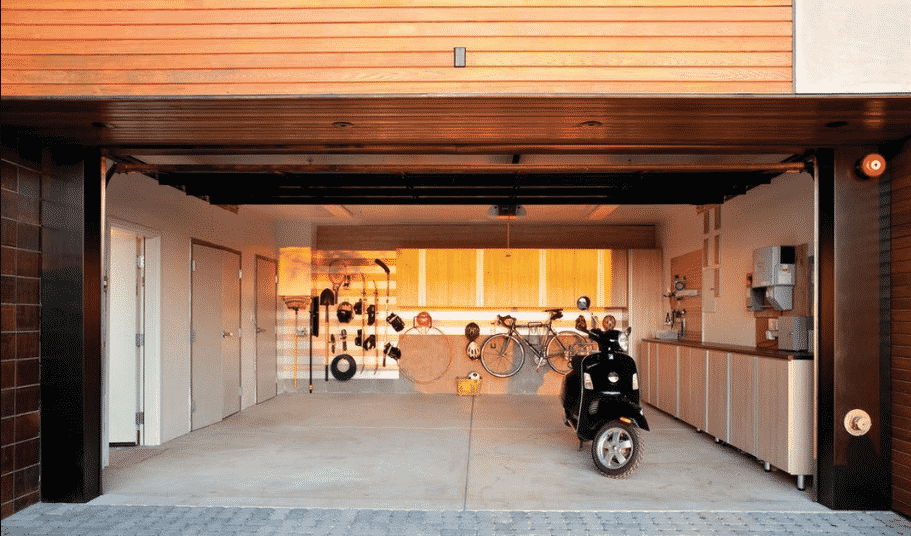 Пол в гараже выполняют из бетона или керамической плитки («Как и из чего сделать полы в подвале»). Можно сделать их мастичными. Для обеспечения стока воды и выезда из гаража накатом, полы в гараже устраивают с уклоном в сторону ворот. Рядом с входом ставят верстак с тисками и выдвижные ящики для инструмента. Чтобы не терялись ключи, над верстаком навешивают доску для хранения ключей и других инструментов. Под верстаком располагают ведро и канистры. Остается установить ящик с песком, огнетушитель и лопату.