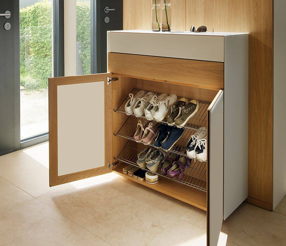 - Шкаф с выдвижными отделениями для обуви не по сезону (3 шт — на 3 «незадействованных» сезона) + закрытым или открытым отделением для пар, находящихся в носке в настоящий момент.