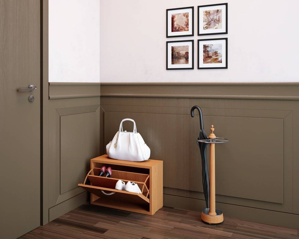 - Тумбочка с обувницей, вмещающая при компактных размерах всю семейную обувь.