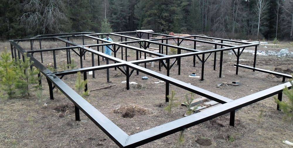 2. Металлический швеллер все чаще стал применятся с распостранением винтовых свай в качестве фундамента. Приваренный металлический швеллер максимально надежно фиксирует винтовые сваи. Свайное поле в таком случае образует единую систему, в которой ни одна свая не может открениться и просесть в грунт. Минусами такой контсрукции является относительно высокая стоимость как самого швеллера, так и его установки.