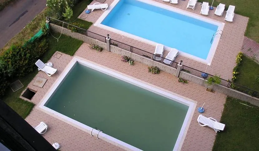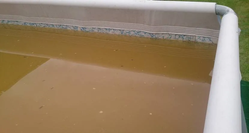 Ржавая вода и сор в бассейне при некачественной очистке