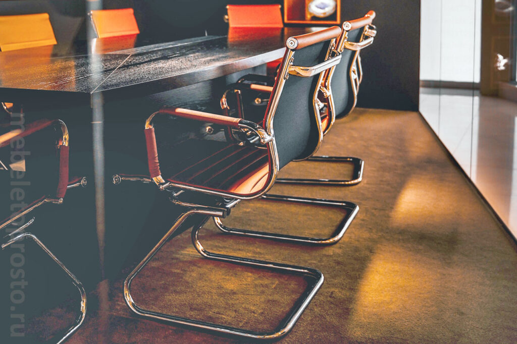 Гостевые зачастую минималистичны. Тут все должно быть устойчиво, прочно, компактно и легко. Для помещений, в которых проводятся совещания или переговоры, лучше приобретать вращающиеся варианты (поможет во время просмотра видео материалов или слайдов развернуться в сторону экрана без дополнительных манипуляций). Кресло руководителя призвано подчеркнуть статус его владельца.