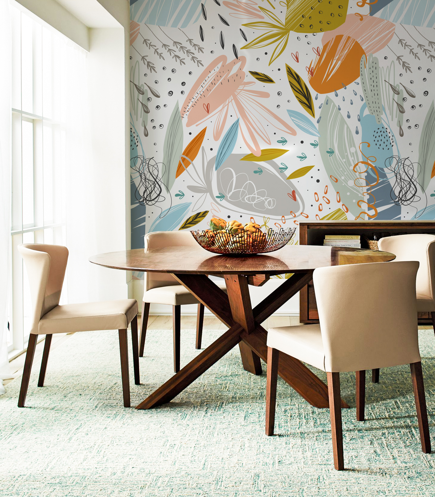 Принт с повторяющимся рисунком легко узнать по цветному омбре, перламутровому блеску и сложному узору. Чем сложнее дизайн, тем менее он подходит для кухни. Чтобы не ошибиться с выбором обоев, стоит отдавать предпочтением простым абстракциям.