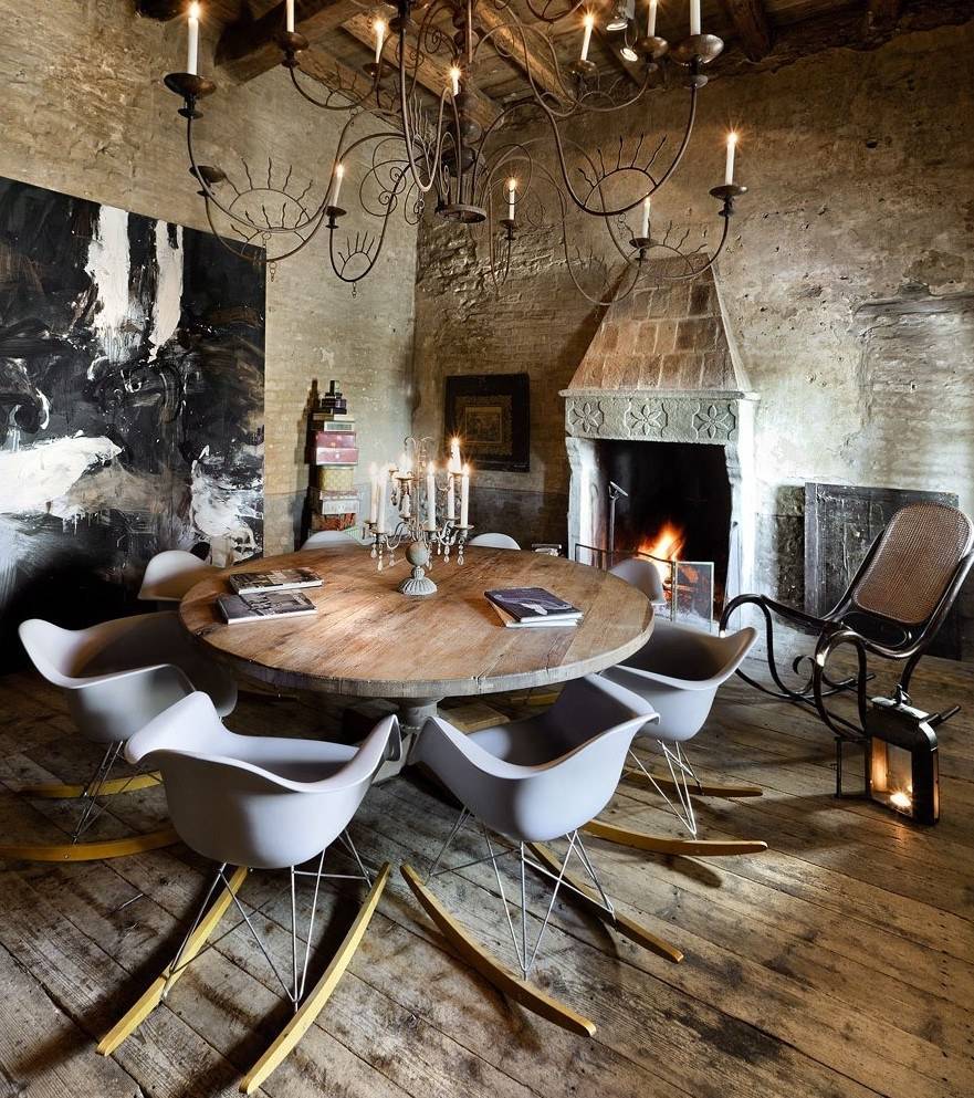 Поклонники таких деревенских стилей, как кантри и прованс, могут не озадачиваться сложностью форм и богатством расцветок — их стол должен выглядеть просто и несколько потрепанным временем, а обивка мебели может позволить себе грубые ткани и металлические заклепки.