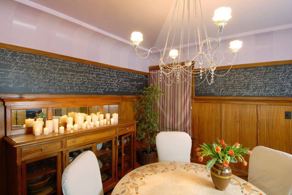Какой бы маленькой ни была кухня, даже в ней можно найти возможность, чтобы сделать ее более привлекательной. Если у вас стены рядом с рабочей зоной заняты навесными шкафчиками, это не означает, что вы должны все так оставить. Во многих кухнях часто пустой остается стена рядом с обеденным столом. Именно эта часть кухонного пространства и сможет стать полем для воплощения самых нестандартных дизайнерских идей.