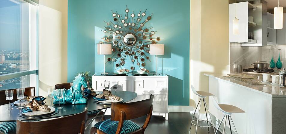 Подбирая цвет стены, важно ориентироваться на цвет мебели, гарнитура, потолка и напольного покрытия