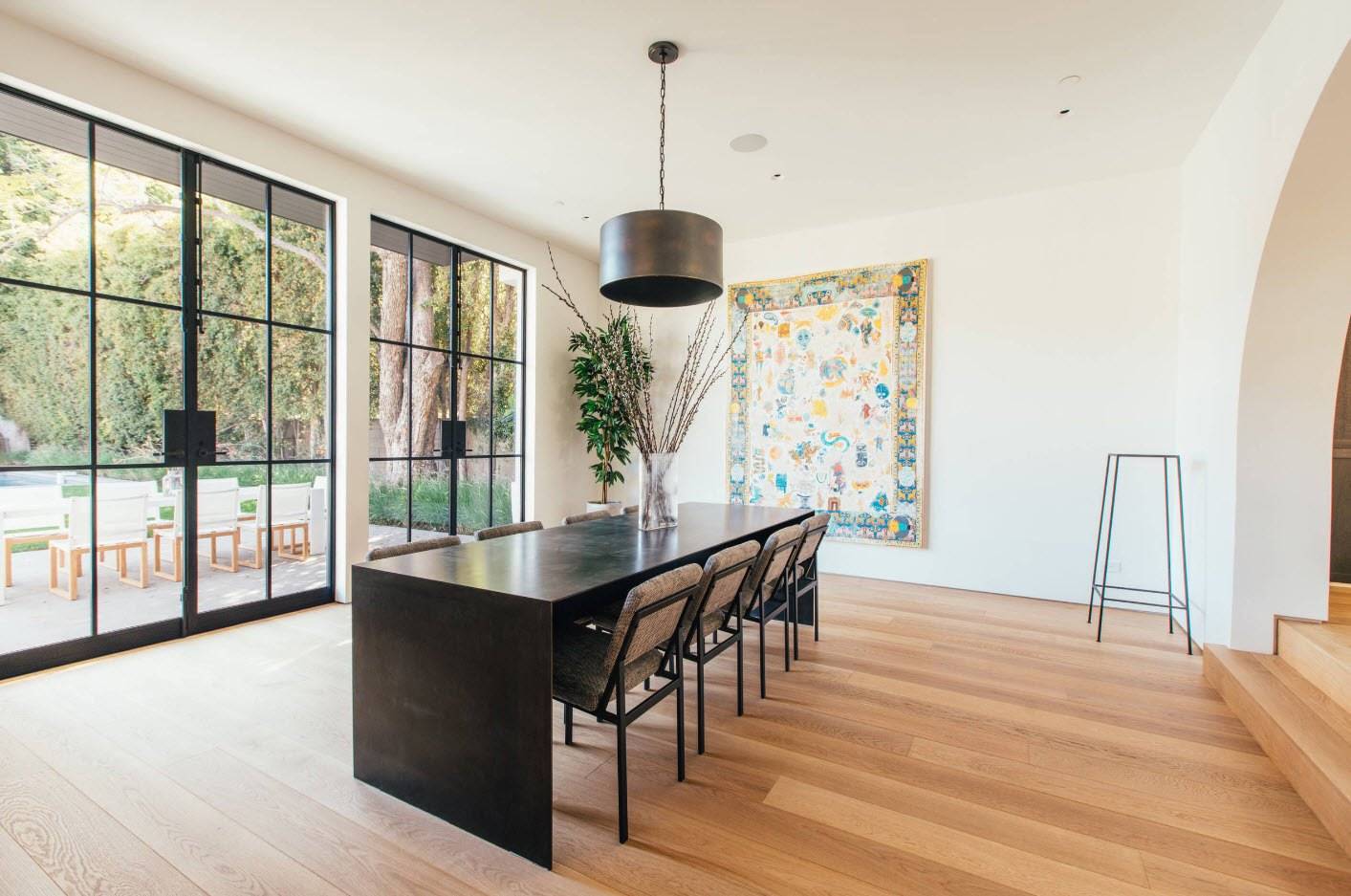 При этом, барная стойка может служить как самостоятельной обеденной зоной (для небольшой семьи), так и дополнительным местом для быстрых перекусов. Если место в кухне-гостиной или студии позволяет, то лучше установить и отдельную полноценную обеденную группу, например, для приема гостей.
