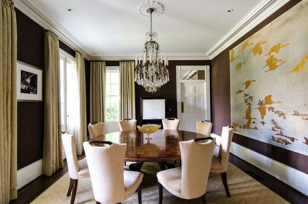 Если вас вдохновляют витиеватые формы и позолота, например, стиля ампир, то для дизайна обеденной группы выбора просто не остается. Резные ножки, завитушки и блеск позолоты — всё это должно быть отражено и в столе, и в стульях.