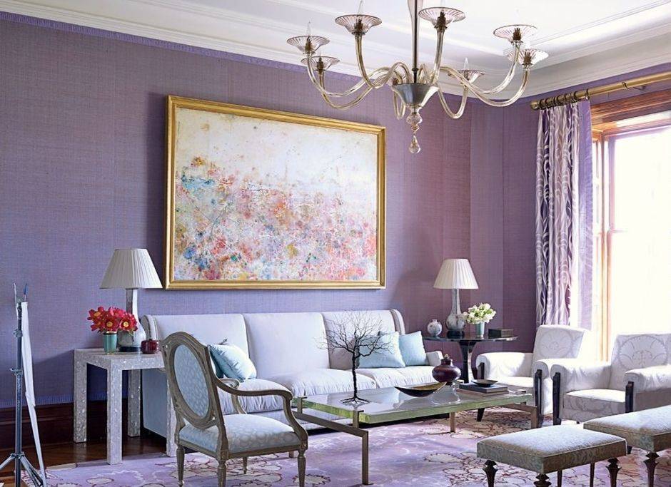 сиреневый оттенок разной насыщенности позволяет обыграть размеры пространства: светлые, приближенные к белым, тона будут расширять площадь комнаты, а яркие и насыщенные оттенки уменьшат слишком большой интерьер; хотя однотонные сиреневые покрытия для стен считаются отличным способом оформления современных дизайнов, всё же, этот оттенок относится к старинным и классическим: интерьеры, оформленные на тематику классики, прованса, романтизма, ретро или даже арт-деко, будут выглядеть превосходно в такой цветовой гамме; при правильном сочетании контрастов в сиреневых интерьерах можно выделить отдельные стены, ниши, выступы или даже зонировать комнату;