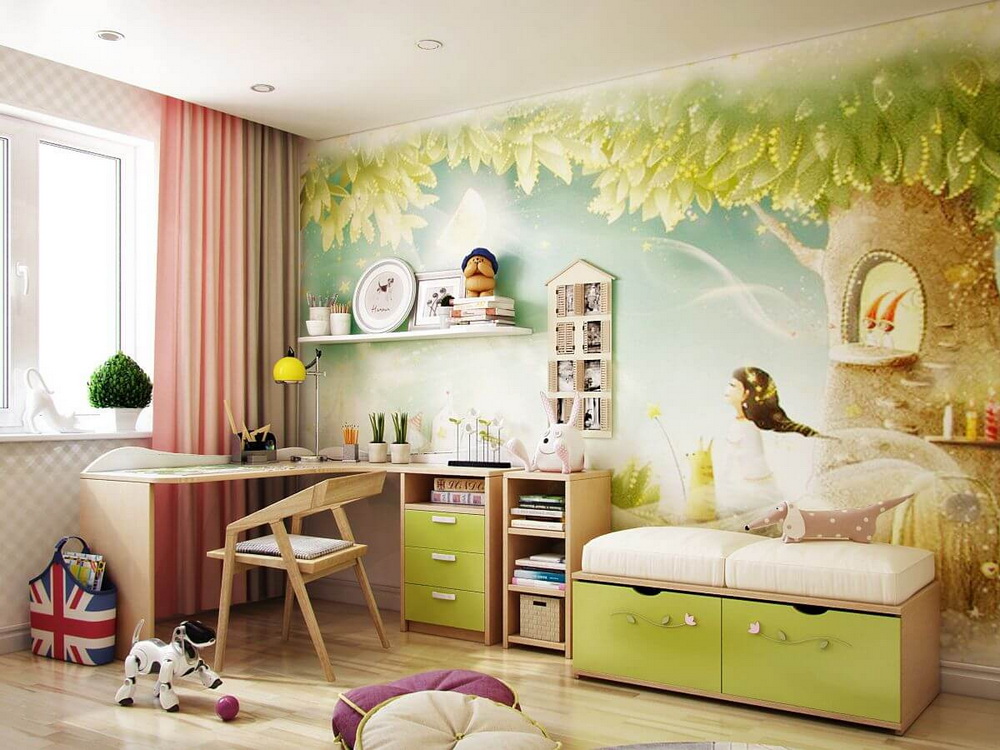 По данным исследований, красный, желтый, синий и зеленый цвета влияют на творческое развитие детей. Поэтому рекомендуется использовать эти цвета при оформлении игровой зоны комнаты.