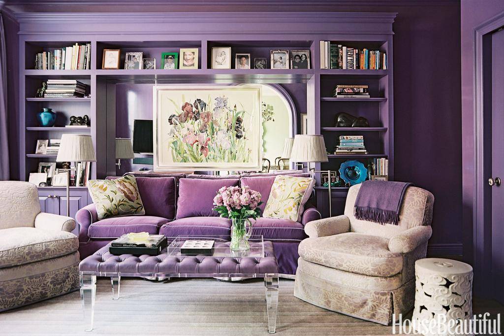 Гостиная в сиреневых тонах вызывает целый калейдоскоп визуальных ассоциаций: