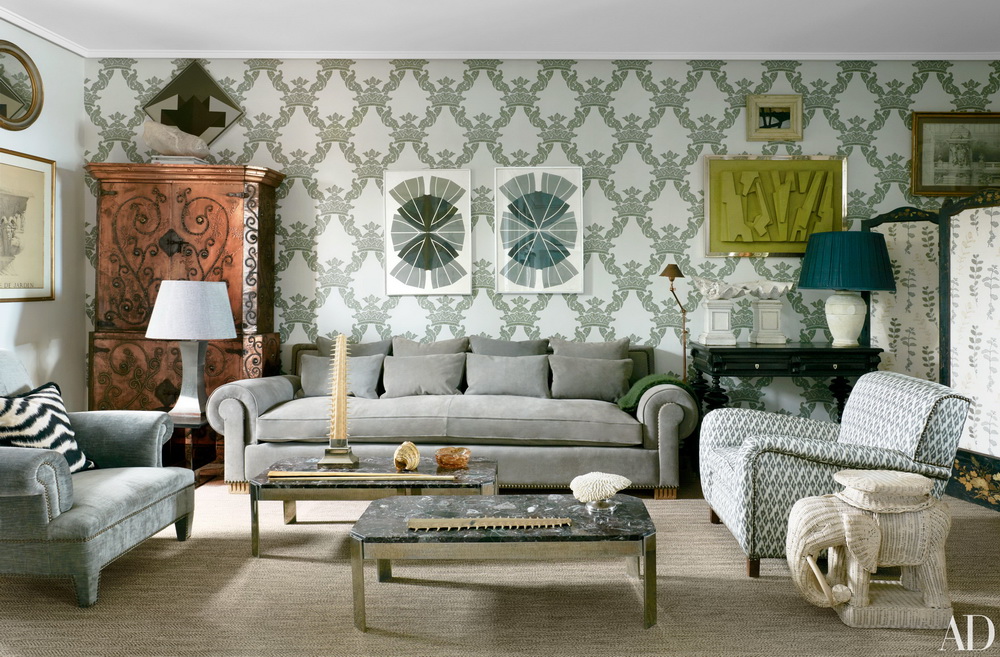 В просторной и широкой комнате с высокими потолками дизайнеры рекомендуют использовать любые сочетания обоев.
