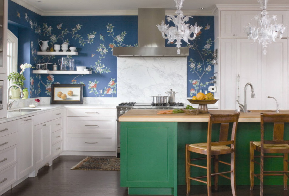 При работе с таким цветом важно проявлять чувство меры, но и нельзя опасаться экспериментов, ведь обои могут быть с самым разнообразным узором, а индивидуальность и уют в интерьере кухни складывается именно из их сочетаний