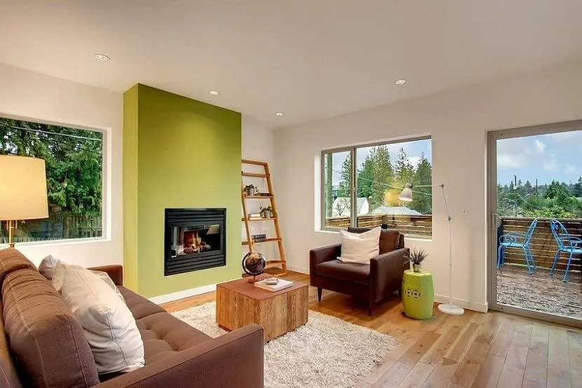 Если вы с помощью акцентной перегородки хотите визуально уменьшить пространство, то стоит выбирать теплые тона. Холодные, наоборот, раздвинут стены.