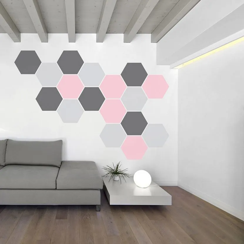 Подчеркнуть интерьер и создать его уникальным поможет окраска сотами. Ее делать можно по заранее нарисованному шаблону. Многие сначала подготавливают поверхность: с помощью липкой ленты создают рисунок, после чего приступают к покраске. Такие узоры лучше сделать разноцветными, чередуя светлый тон с темным. Допускается амбре сверху вниз.