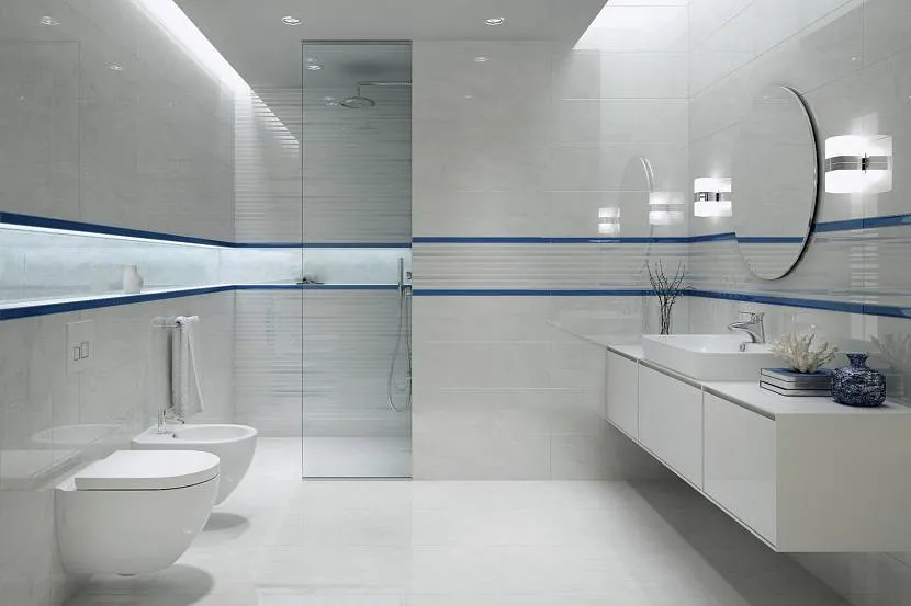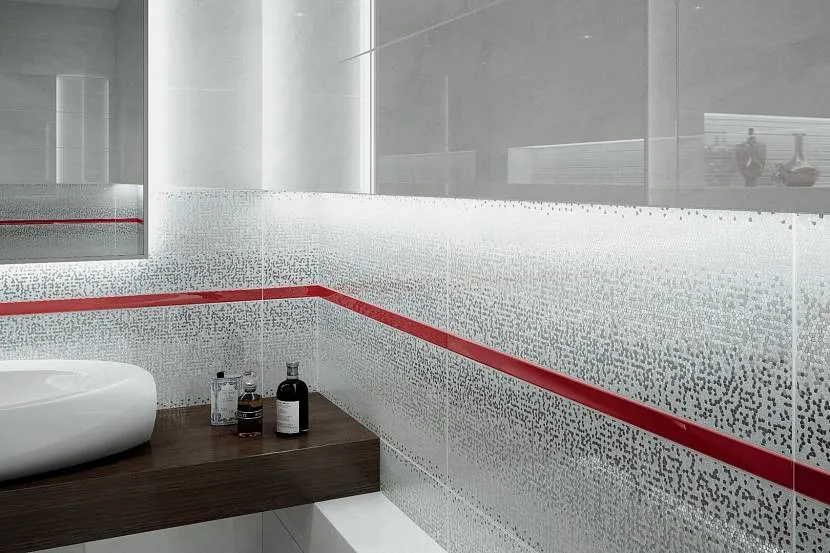 Белая стеклянная плитка для облицовки стен ванной комнатыИсточник plitkaspb.com