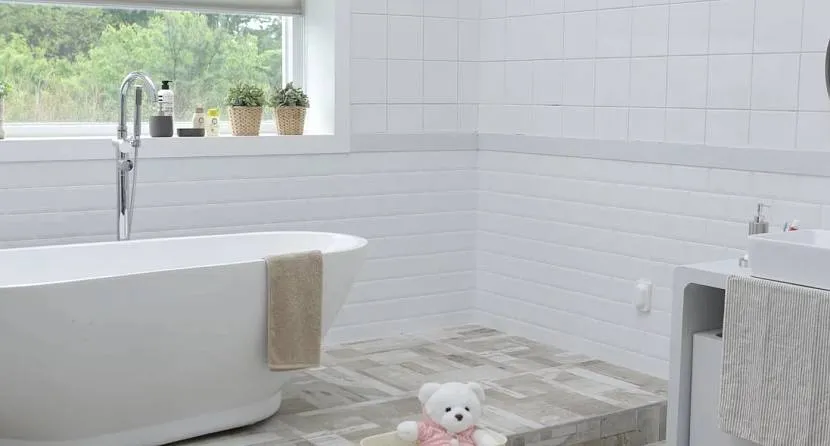Белая мягкая плитка в ваннойИсточник vinilnapol.ru