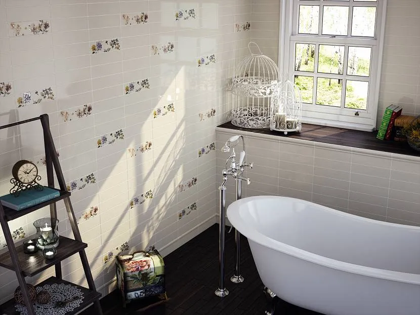 Белая виниловая плитка для стиля прованс в ванной комнатеИсточник www.rusplitka.ru/