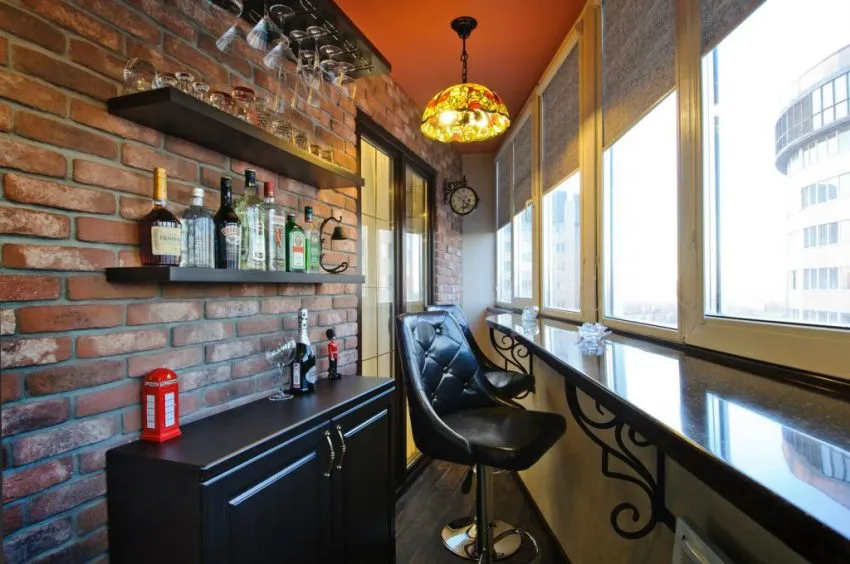 Оригинальное решение для домашнего бара на балконе