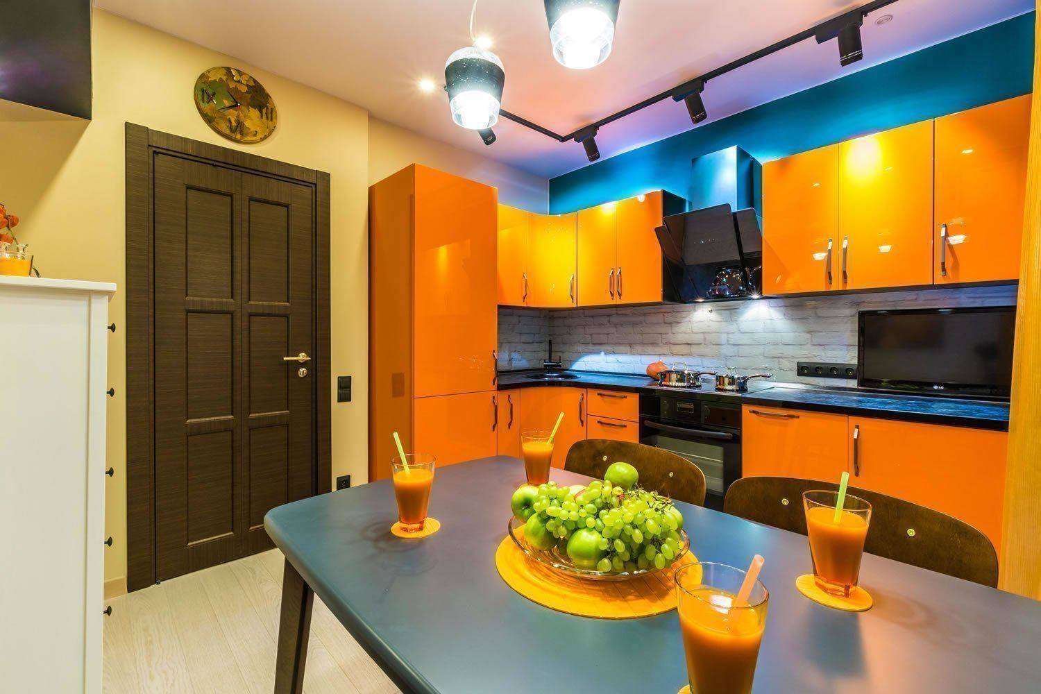 - Не стоит использовать один цвет в интерьере. Однотонная оранжевая кухня будет утомлять, а со временем начнет раздражать.