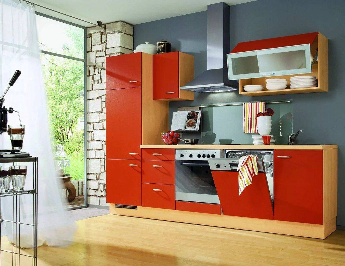 - Экстравагантное сочетание апельсинового цвета с огненным делает кухню взрывоопасной по ощущениям. Поэтому дуэт используется крайне редко. Но внести в дружелюбную оранжевую обстановку может несколько ноток алого: это может быть просто узор на фасадах, окантовка мебели, орнамент обоев или/и штор. Конечно, к такой комбинации нужно обустроить достойный фон. Он может быть белым или же молочным – нейтральным и ненавязчивым.