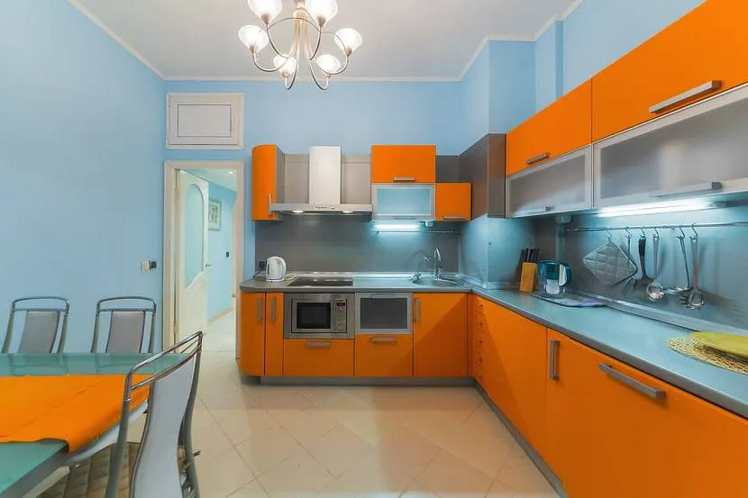 Какой цвет сочетается с оранжевым на кухне?