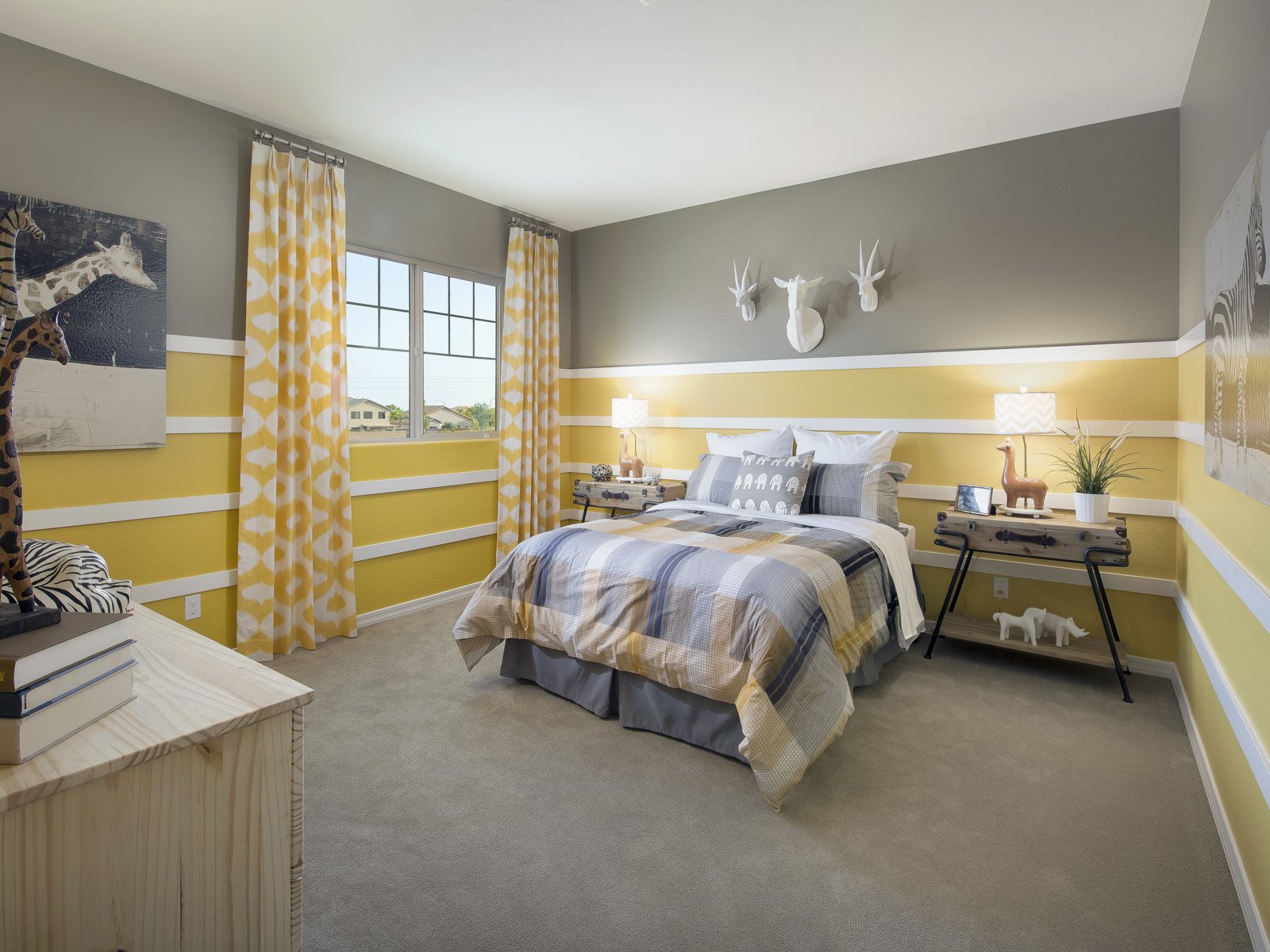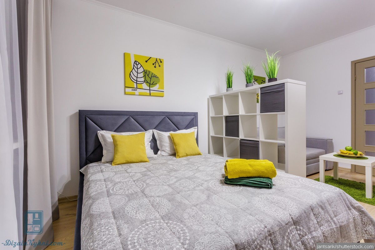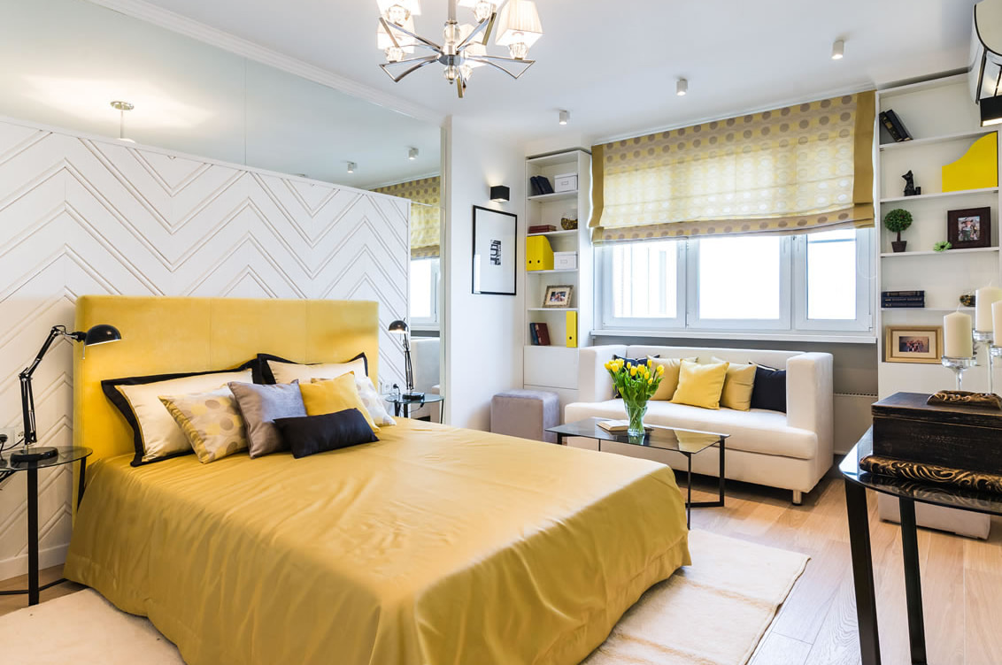 Придать элегантности комнате поможет сочетание серого и желтого. Оба цвета будут компенсировать недостатки и нейтрализовывать друг друга. Желтый не будет таким гиперактивным, а серый сбросит излишнюю мрачность. В итоге получится уютная спальня с нотками креативности.