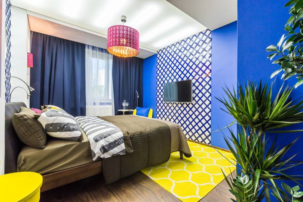 Колоритное оформление любимо не только взрослыми, но и детьми, обожающими сказочные декорации. Фото спальни в ярких цветах подтверждают актуальность и востребованность подобного выбора. Такая комната непременно подарит владельцам незабываемые сновидения.
