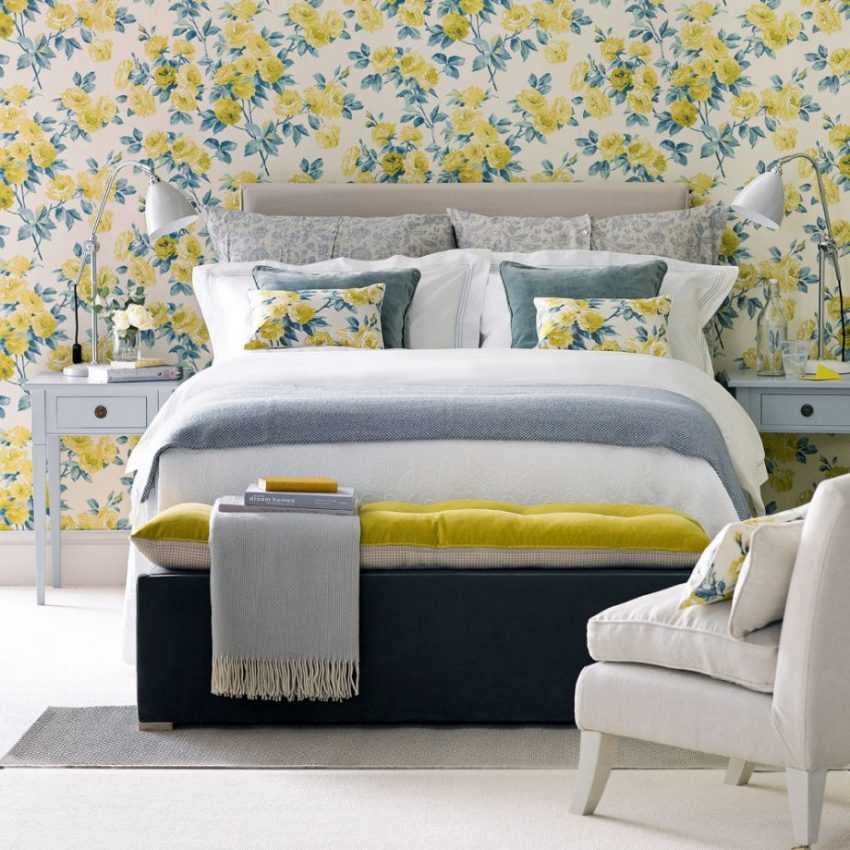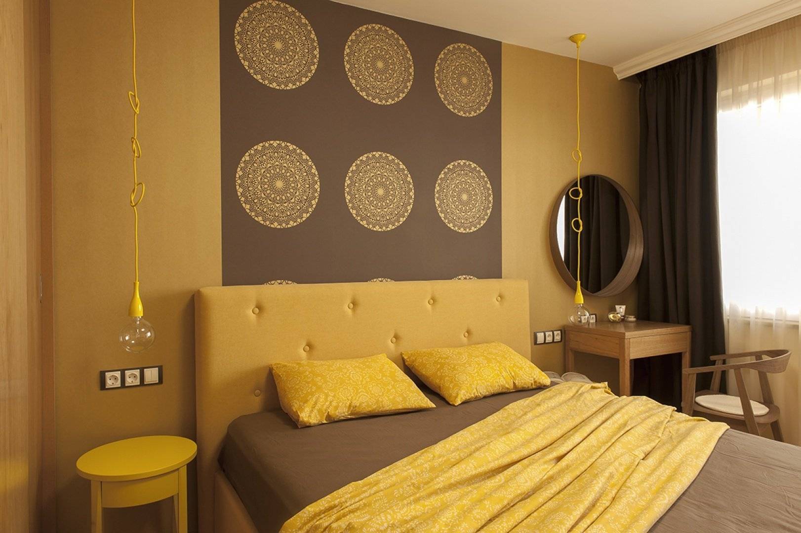 Здесь важно правильно выбрать цветовую гамму, чтобы общая атмосфера комнаты располагала к отдыху и отвлечению. Желтый – грамотное решение для дизайна. Обои теплых оттенков подойдут как для семейной, так и для личной спальни, однако холодные и излишне яркие лучше не использовать