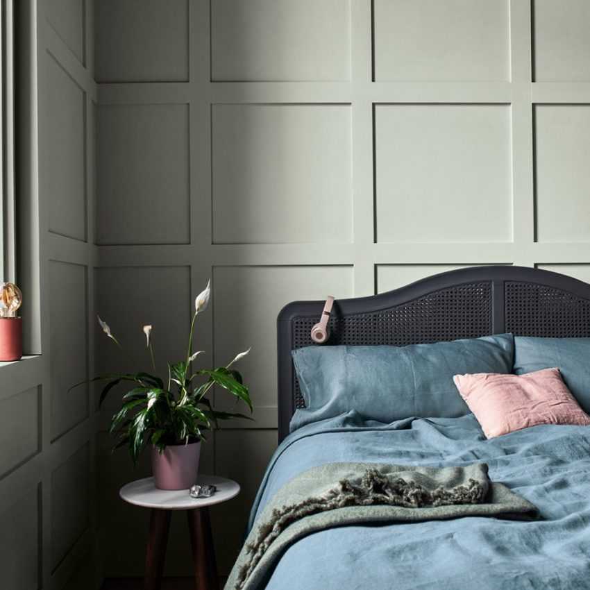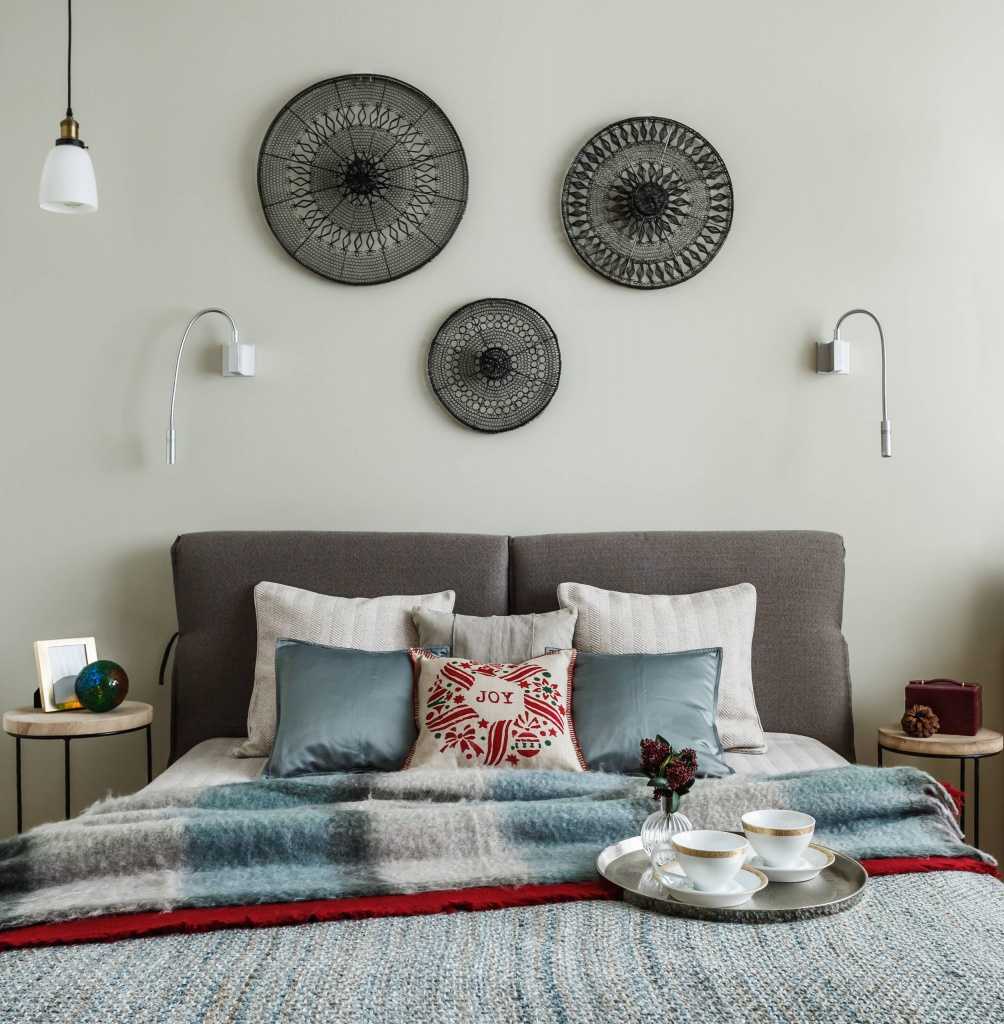 Чтобы обновить светлую спальню можно не красить целую стену, а ограничиться декором.