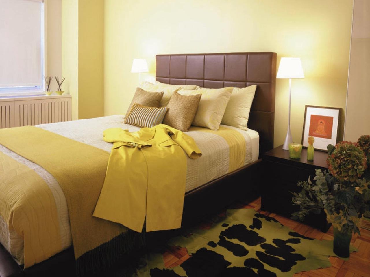 Уютом и теплотой обладает желто-коричневая комбинация. Такое сочетание сделает спальню изысканной и элегантной. В комнату можно добавить декор шоколадных оттенков.