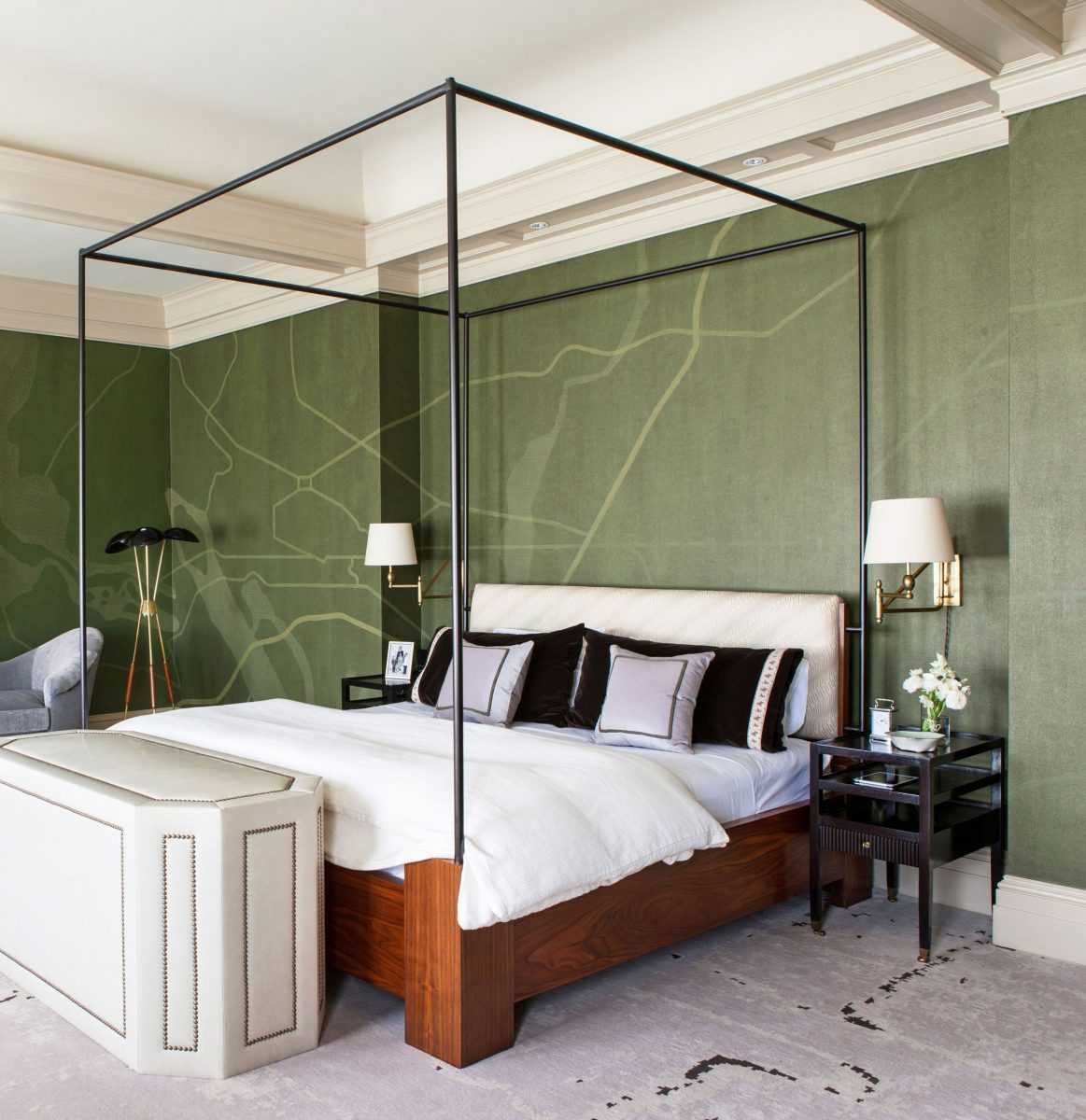 Зелений. Інтер’єр спальні оранжевого кольору гармонійно доповнюється теплими тонами молодої трави і зелені листя. Разом вони створюють радісну атмосферу і особливо підходять для оформлення спалень в екологічних інтер’єрних стилях.