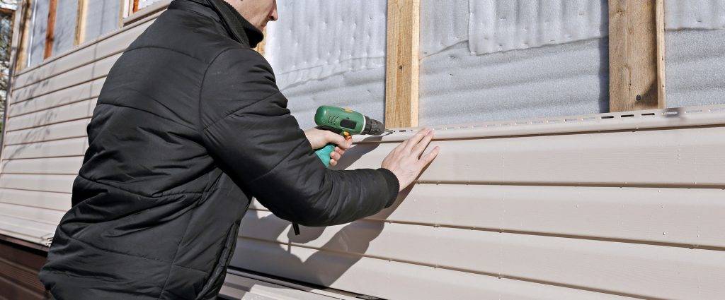 Все процессы монтажа сухие. Поэтому обшивку дома сайдингом с утеплителем, как и без утеплителя, можно выполнять даже зимой. При этом нужно учесть, что виниловые и акриловые панели в это время сужены